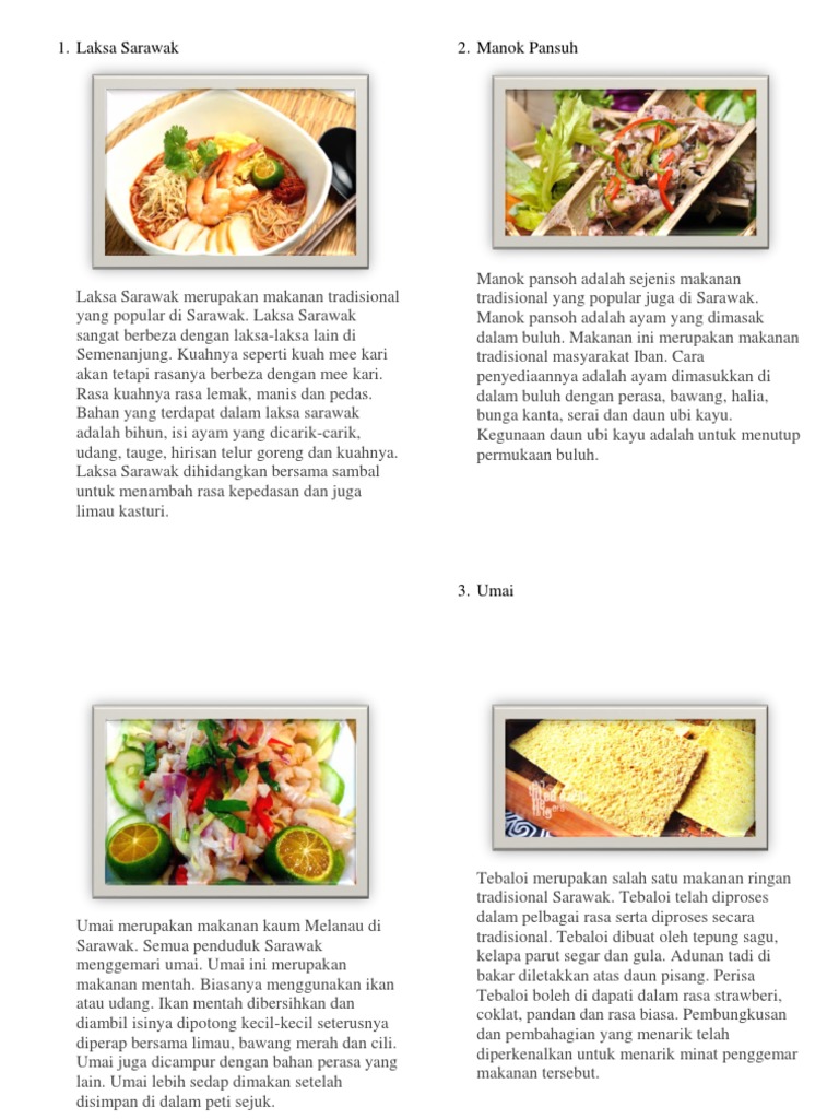 Makanan tradisional sarawak pdf. Malaysia sememangnya terkenal dengan masyarakat berbilang kaum. Perluasan jangkauan pemasaran dapat dilakukan dengan internet marketing facebook WA internetblog mengingat jumlah penduduk yang mengakses media social juga. Ada makanan mentah dimasak peragian fermentasi marinate.